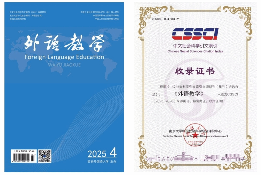 近日,南京大学中国社会科学研究评价中心正式发布中文社会科学引文索引(CSSCI)来源期刊目录(2025—2026),我校《外语教学》和《人文地理》入选CSSCI(2025—2026)来源期刊,《西安外国语大学学报》入选CSSCI(2025—2026)扩展版来源期刊。我校三本学术期刊连续多年入选中文社会科学引文索引(CSSCI)目录,标志着三本刊物的学术质量、学术声誉与影响力不断提升,获得权威评价体系和学界同行的高度认可。
